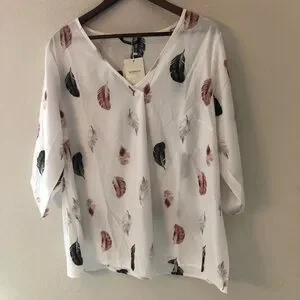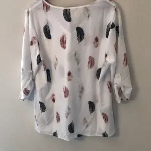 BloomChic Women's Feather Print Blouse Roll Tab Sleeve NWT 14-16