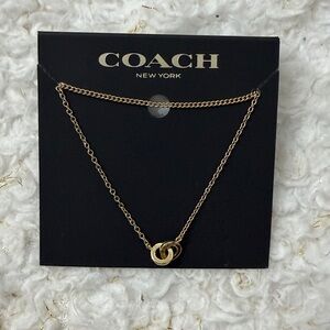Coach Interlocking Open Circle Pearl Pendant Necklace 16”+2”