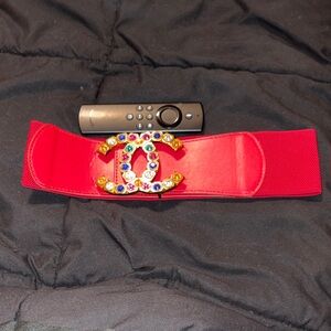 Elevate your style with this stunning red belt can be worn with a dress or any high waisted outfit! Never worn.