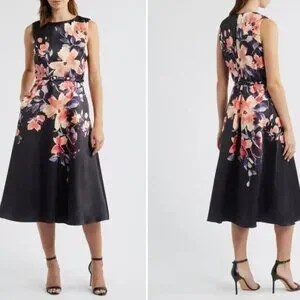 Julia Jordan Placed Floral Cocktail Midi Dress
