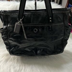 Coach Signature Black Patent Leather Baby Diaper Tote Shoulder Bag F17940 XL Bag.