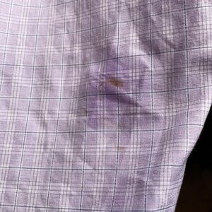 Traditional Fit. Size says 17-34/35. Lavender & White Plaid with blue. 100% Cotton Perfect Condition except for one spot on the back bottom right (see last photo)