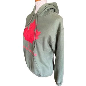 Canada Hoodie “On The Eh Team” Army Green With Red Leaf Gildan Size Small