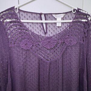 CJ Banks Womens Blouse Size 1X Purple Lace Sheer Boho Fairy Whimsigoth
