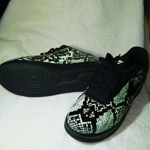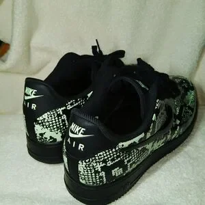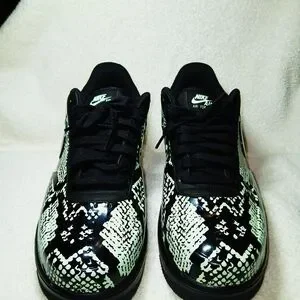 Eye-catching Nike sneakers with a unique black and snake skin design. Ideal for everyday style.