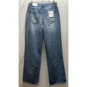 NWT Women's Zenana Wide Leg Button Fly Distresed Ripped Denim Blue Jeans 28 X 32