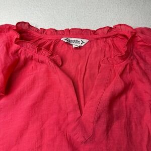 Nanette Lepore Watermelon Ruffle V Neck Blouse Size L