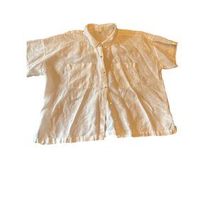 XL Eileen Fisher Linen White Eileen Fisher shirt, organic linen shirt, white button-up shirt, professional attire, summer shirt, casual linen shirt, women's fashion, designer shirt, short sleeve top, breathable clothing, collared shirt, chest pockets, sustainable fashion Good Casual Machine wash cold, tumble dry low All season Top to bottom = 25 inches