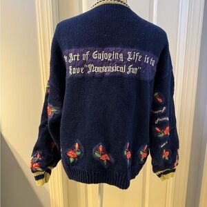 Stylish navy blue cardigan with intricate embroidery. Perfect for adding a unique touch to your wardrobe.
