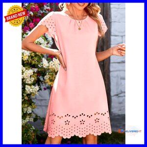 Brand new with tags, this elegant mini dress features beautiful hollow out embroidery and a relaxed, flattering fit perfect for casual days or special occasions. The soft, stretchy material is comfortable and versatile for a variety of events.