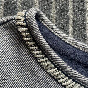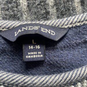 Land's End Cotton Beaded Sweater Size XL 14-16 Navy Chevron Pattern