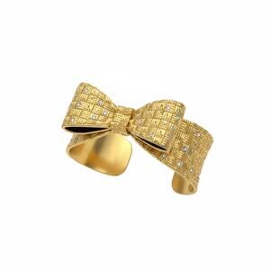 Features an elegant woven bow design with clear crystal accents.
