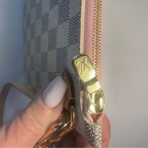 Louis Vuitton Damien Azur Zip Wristlet Pouch Cream, Pink Interior LV Clutch