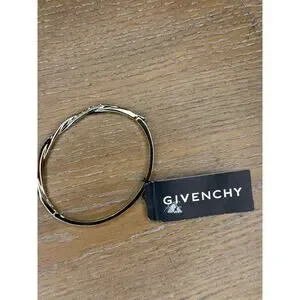 Authentic Givenchy gold-tone bangle bracelet featuring an elegant twisted design accented with clear crystals. Hinged closure for easy wear. Classic designer style that works for both everyday and dressy looks.