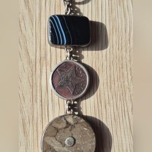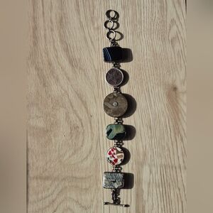 925 Silver&Multi-stoned vintage toggle bracelet made by Sandy Baker 8.268"