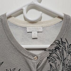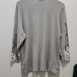 Elegant gray shirt with floral pattern. Button-down front. Ideal for casual outings.
