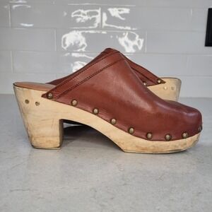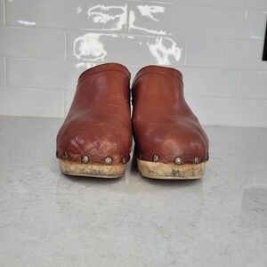 Beek Woodpecker Leather Clog Womens 10 Brown Wooden Wedge Block Heel Studded