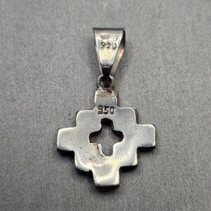 VTG 950 Silver Gemstone Chakana Inca Cross Pendant 1 1/8" Signed DW Rainbow
