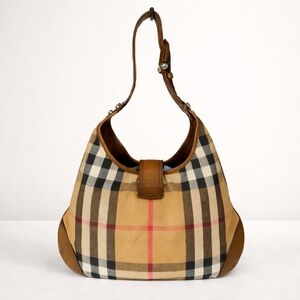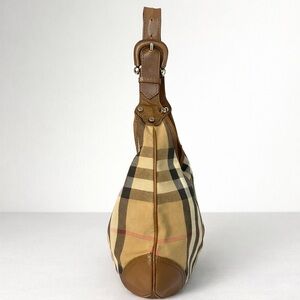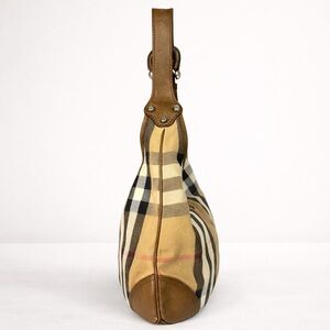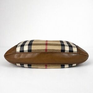 Burberry Brooke House Check Hobo Bag Tan Canvas Leather Trim