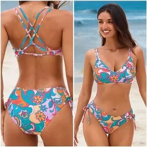 NWT Cupshe Floral Paisley Strappy Two Piece Low Rise Bikini Swimsuit Bathing L
