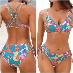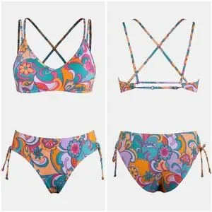 NEW w/ tags CUPSHE Rainbow Multi-Color Blue Orange Pink Floral Paisley Two Piece 2pc Bikini Swimsuit Set.