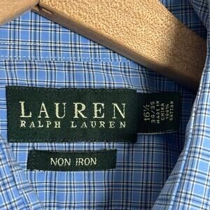 Lauren Ralph Lauren Mens Blue Checkered Button Down Long Sleeve 100% Cotton 16.5