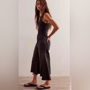 Free People We The Free Ripple Wide Leg Cropped Distressed Jeans