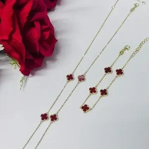 ❤️🔥14K/925S CUSTOM RED CARNELIAN CLOVER SET
