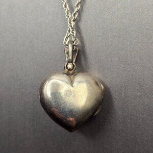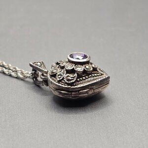 VTG Charles Winston Sterling Silver Amethyst Heart Locket Pendant 1" Signed CW