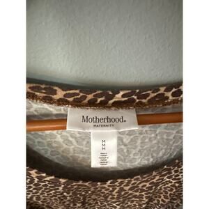 This Motherhood Maternity bodycon dress features a classic scoop neckline, short sleeves, and flattering side ruching designed to accommodate a growing bump. The stretchy knit fabric provides comfort while maintaining a sleek silhouette, making it suitable for casual wear, baby showers, or dress-up occasions. The animal print adds a bold, timeless touch that transitions well across seasons.