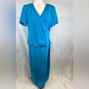 Vintage Spenser Jeremy 100% silk beautiful blue faux wrap jacket maxi dress 12