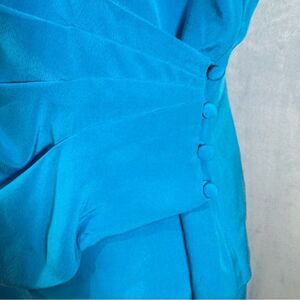 Faux wrap top with pleated button side. Short sleeves with removable shoulder pads. Zipper closure. Back slit. EUC