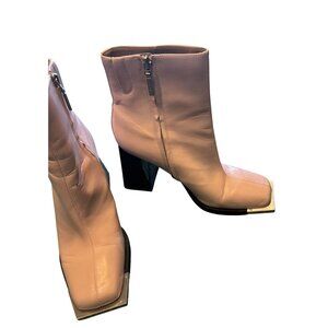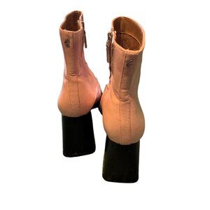 Nessie Circus NY Square-Toe Pink Leather Ankle Boots Black Block Heels size 10