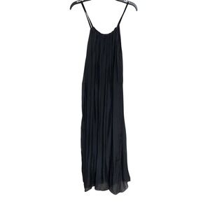 Keywords: Gigi Moda, Italy, silk blend, maxi dress, sleeveless, gathered neck, crinkle texture, sheer hem, elegant, sophisticated, minimalist, resort wear