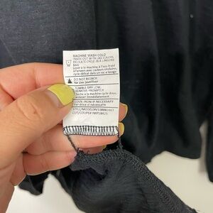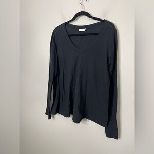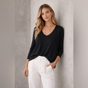 Vince Pima Cotton Essential Long Sleeve Tee V Neck in Black Sz L