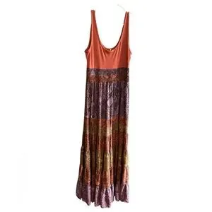 Keywords: Anthropologie, maxi dress, boho, festival, casual, multicolor, snake print, sleeveless, scoop neck, spring, comfortable, tiered, machine washable, pre-owned.