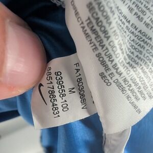 The Nike Full Zip Hooded Performance Windbreaker Track Jacket in white and blue, size M, is a dynamic and stylish addition to any woman's wardrobe. Featuring a sleek white base with blue accents, this jacket combines a full-zip front with a hooded design, offering lightweight, weather-resistant protection perfect for outdoor workouts or casual wear. The performance-driven fabric, likely incorporating Nike's Dri-FIT technology, provides breathability and moisture-wicking comfort, while the adjustable hood and zippered pockets add functionality for active lifestyles. Designed with a relaxed fit, it's ideal for layering over activewear, ensuring flexibility and durability. Nike's iconic Swoosh branding and quality craftsmanship make this windbreaker a versatile choice for elevating your athletic style with a modern, sporty edge.