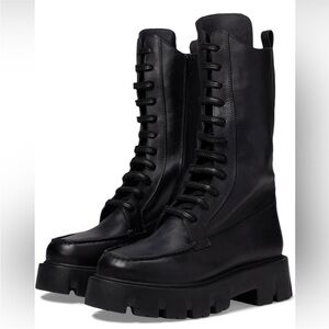 Features: Combat boot style, buttery smooth leather fabrication, zipper and lace-up closure, loafer-style stitched details, lugged platform rubber sole