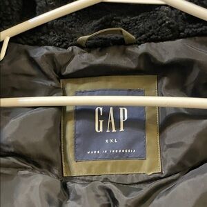 GAP Men's Green Puffer Jacket with Faux Fur Hood