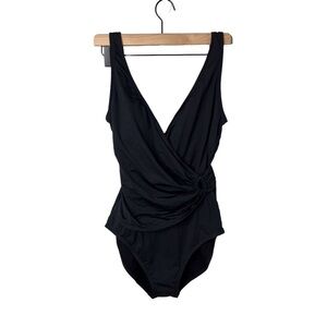 Tommy Bahama Pearl Clara Wrap One Piece Swimsuit Black Size 14 Tummy Control