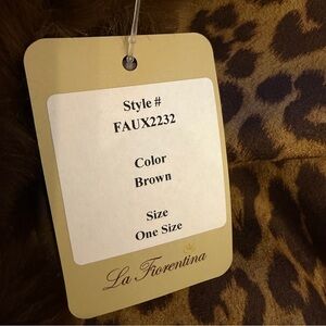 La Fiorentina NWT Leopard Brown Faux Fur Wrap Scarf Animal Print