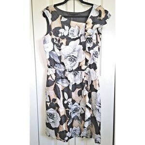White House Black Market 10 Silk Rose-Print Sheath Dress Size 10 Lined Gold/Blk