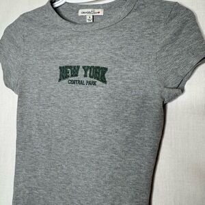 Womens Baby Tee Sz S New York Central Park Short Sleeve Ribbed Y2K