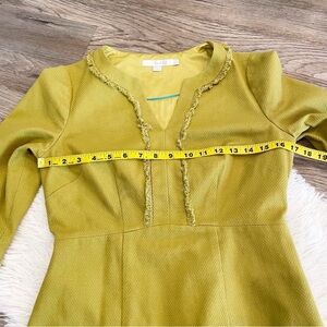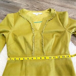 Boden Chartreuse Textured Shift Dress 3/4 Sleeve Fringe Kate Middleton British