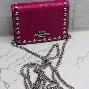 Coach Studded Mini Crossbody Bag w/ Chain. Like New. Fuschia Pink & Silver.