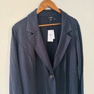 NEW J. Jill Women’s Wearever Soft Blazer Polka Dot Navy Blue Size XL NWT