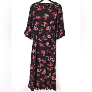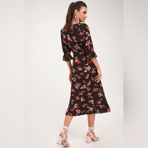 Lulus Midnight Magic Black Floral Print Ruffled Midi Dress Size MEDIUM