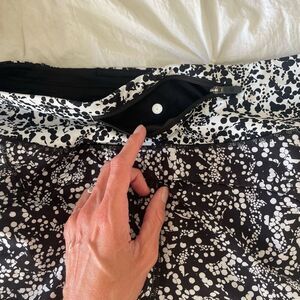 Unique flower pattern, black, and white. No signs of where other than the back tag has been removed. I live in speed up shorts but prefer the 2.5 inch inseam.