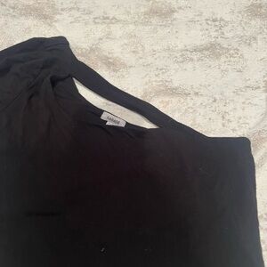 Stylish black one-shoulder top. Perfect for casual or evening wear. Soft and comfortable fabric.