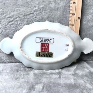 Keywords: Amita dish, trinket holder, jewelry dish, vanity tray, ornate decor, vintage style, accent piece, tabletop decor, gift idea, collectible, floral design, elegant, red gold